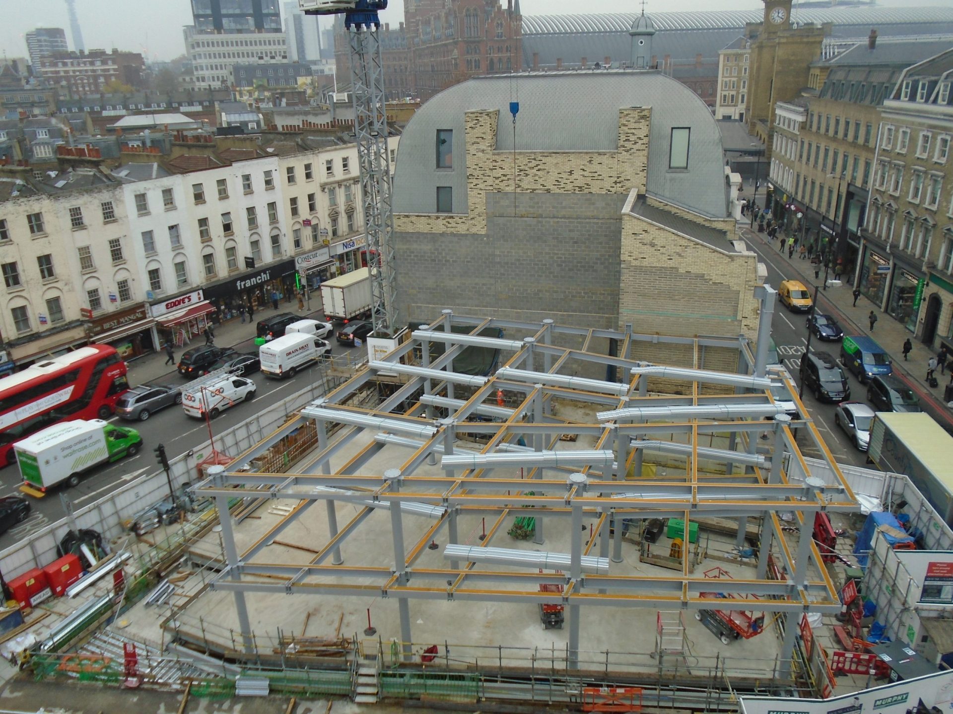 • The steelwork for the Kings Cross Bridge was designed to be lightweight so the imposed load on the foundations below, would not impact the infrastructure below. As well as this the frame was designed to use part of the existing frame.